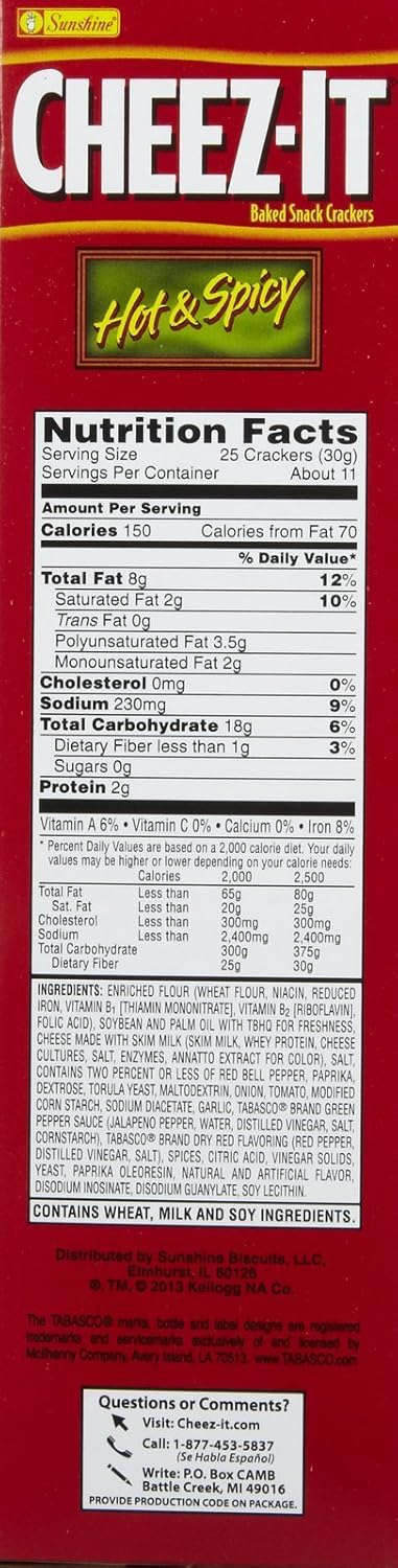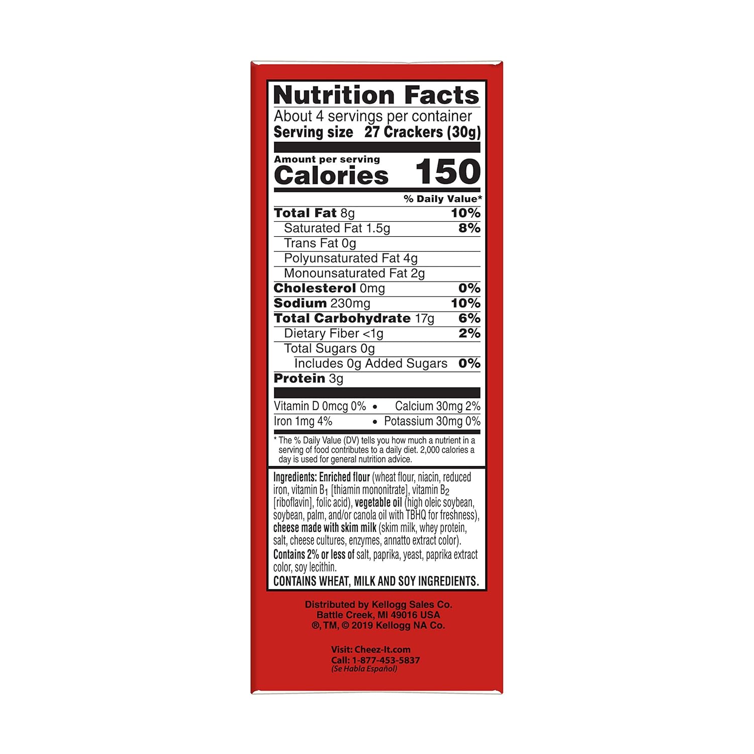 cheez it ingredients label. Cheez it cheddar jack crackers bring cheesy perfection to a whole new level. 21 whole wheat flour enriched flour wheat flour niacin reduced iron vitamin b1 thiamin mononitrate vitamin b2 riboflavin folic acid white cheddar cheese milk cheese cultures salt enzymes soybean oil with tbhq for freshness contains two percent or less of salt calcium. Ingredients enriched flour wheat flour niacin reduced iron vitamin b1 thiamin mononitrate vitamin b2 riboflavin folic acid vegetable oil high oleic soybean soybean palm andor canola oil with tbhq for freshness cheese made with skim milk skim milk whey protein salt cheese cultures enzymes annatto extract colorcontains 2 or less of salt paprika yeast paprika extract color soy lecithin.