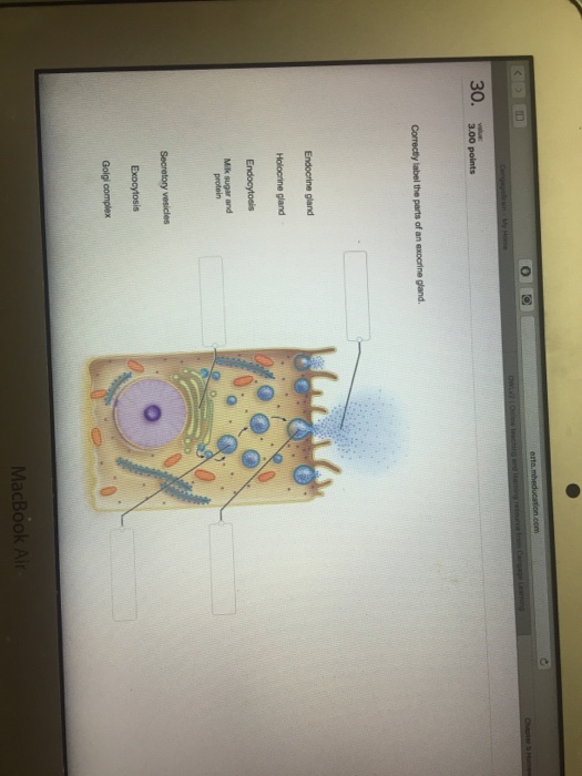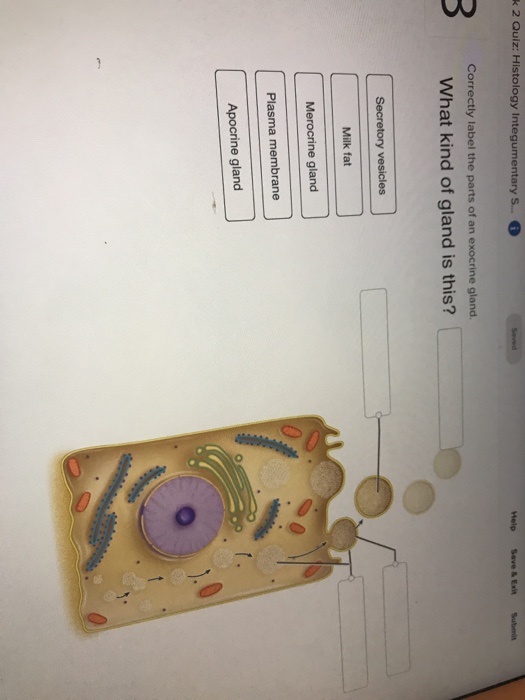 Secretory vesicles milk fat merocrine gland plasma membrane apocrine gland o. Answer to correctly label the parts of an exocrine gland. What kind of gland is this.