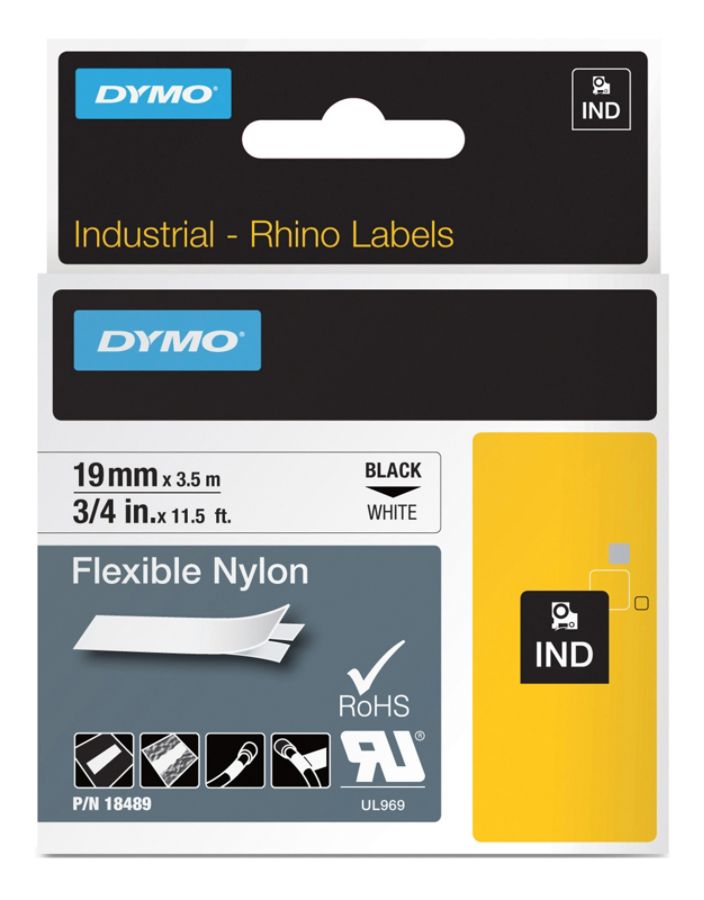 Details About Dymo D1 Flexible Nylon Label Maker Tape 1 2in X 12ft Black On White 16953