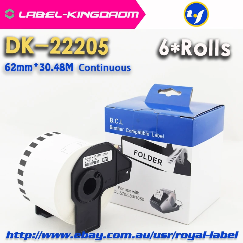 Us 42 0 6 Rolls Compatible Dk 22205 Label 62mm 30 48m Continuous Compatible Brother Printer Ql 570 Ql 700 All Come With Plastic Holder In Printer