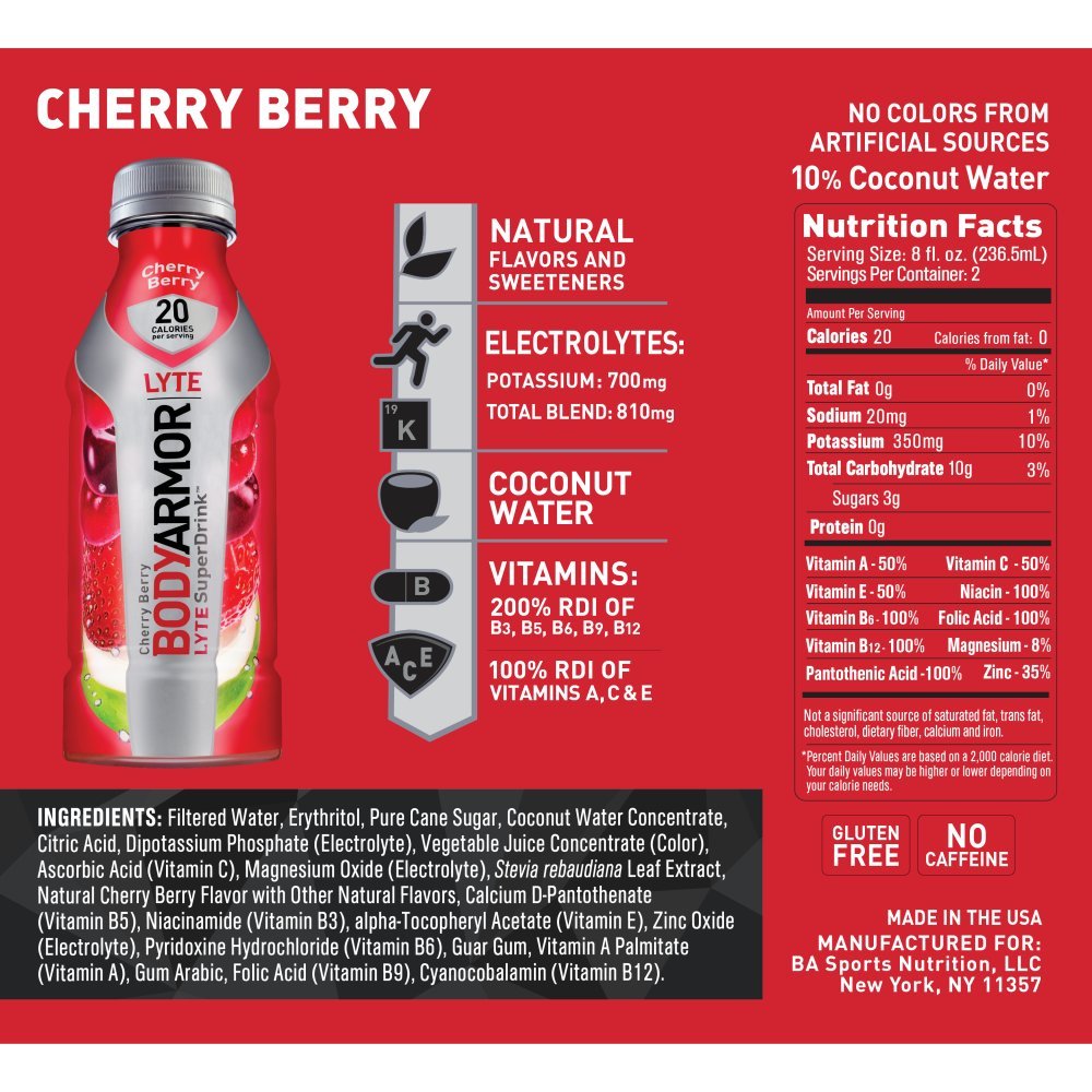 Learn about our sports drinks. Bodyarmor lyte super drink coconut. Track calories carbs fat sodium sugar 10 other nutrients.
