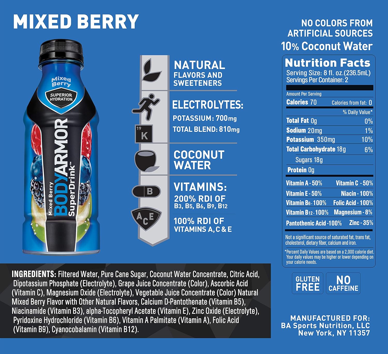 Bodyarmor Sports Drink Sports Beverage Mixed Berry Natural Flavors With Vitamins Potassium Packed Electrolytes No Preservatives Perfect For