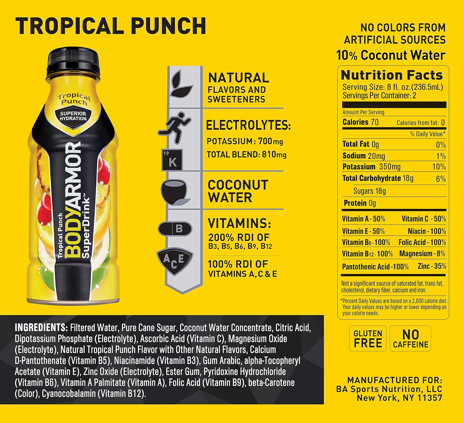body armor drink nutrition label. Good belly tropical orange probiotic juice drink. Get nutrition information for bodyarmor items and over 185000 other foods including over 3000 brands. Honest kids juice drink twisted tropical tango.