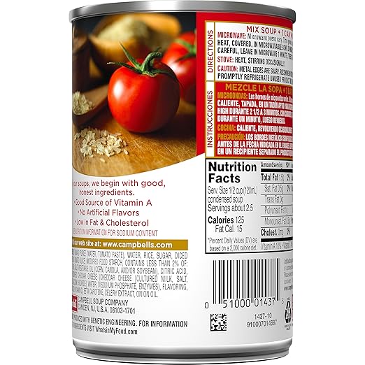 Campbells Tomato Soup Nutrition Label Stock Photo Download Image