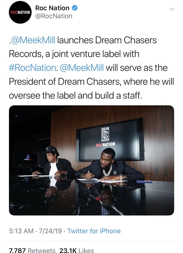 Meek mill launches dream chasers label with jay zs roc nation. The name was taken from his well received mixtape series dreamchasers. Jay z and meek mill are getting into business together.