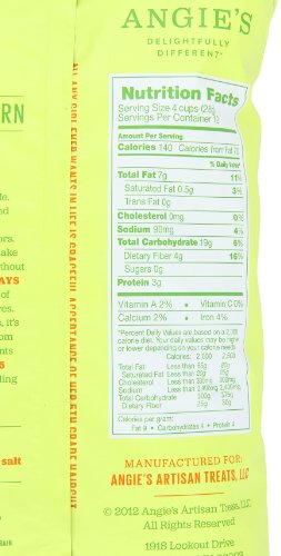 Visit our site for complete nutrition facts for this item and 180000 other foods. When we say butter we mean real butter. Boomchickapop sea salt popcorn angies 1 serving 140 calories 190 grams carbs 70 grams fat 30 grams protein 20 grams fiber 0 mg cholesterol 0 grams saturated fat 800 mg sodium 0 grams sugar 0 grams trans fat.