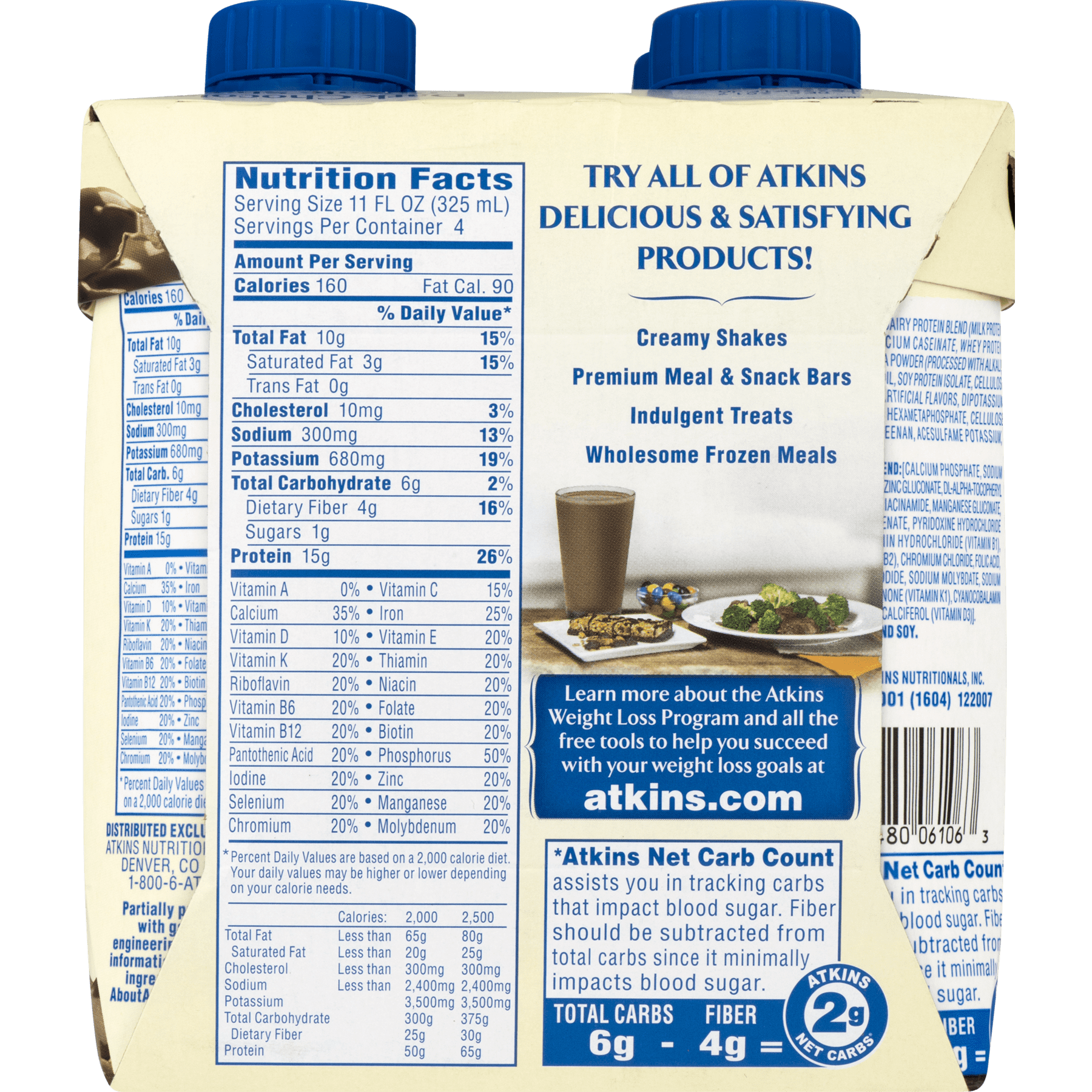 Polyunsaturated fat 00 g. View all buy online. Atkins delicious creamy milk chocolate flavored shakes are sure to satisfy your hunger.