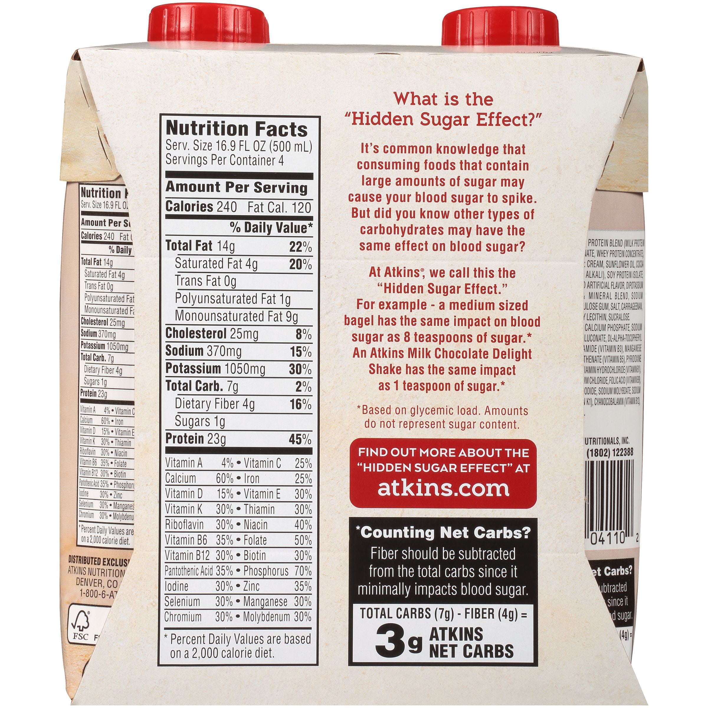 atkins shakes nutrition label. Total fat 90 g. The atkins shakes weigh in with 20 grams of high quality protein 2 to 4 grams of fiber only 1 to 2 grams of net carbs and nary a drop of high fructose corn syrup or other added sugars or any trans fatty acidsand all with 170 calories. These shakes will do wonders to keep your blood sugar level stable.