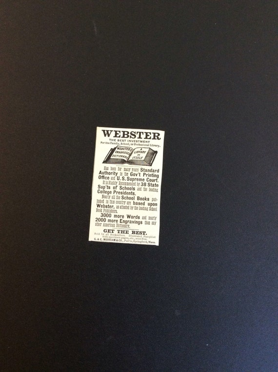 Websters Ad Dictionary Ad Reading Ad Words Library Decor Vintage Ad Dictionary Educational Ad History Old Paper Desk Ad