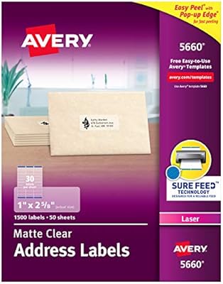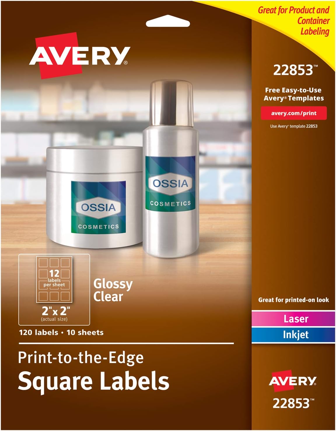 Avery glossy clear labels vanish once applied and are perfect for when you need to be completely clear. Prints on both laser and inkjet printers. These crystal clear labels make sure that even the boldest colors shine through.