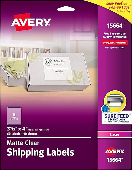 Avery Clear Easy Peel Shipping Labels For Laser Printers 3 1 3 X 4 Box Of 60 15664