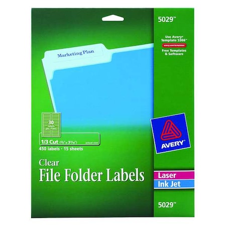 Avery Clear File Folder Labels For Laser And Inkjet Printers 5029 2 3 X 3 7 16 Pack Of 450