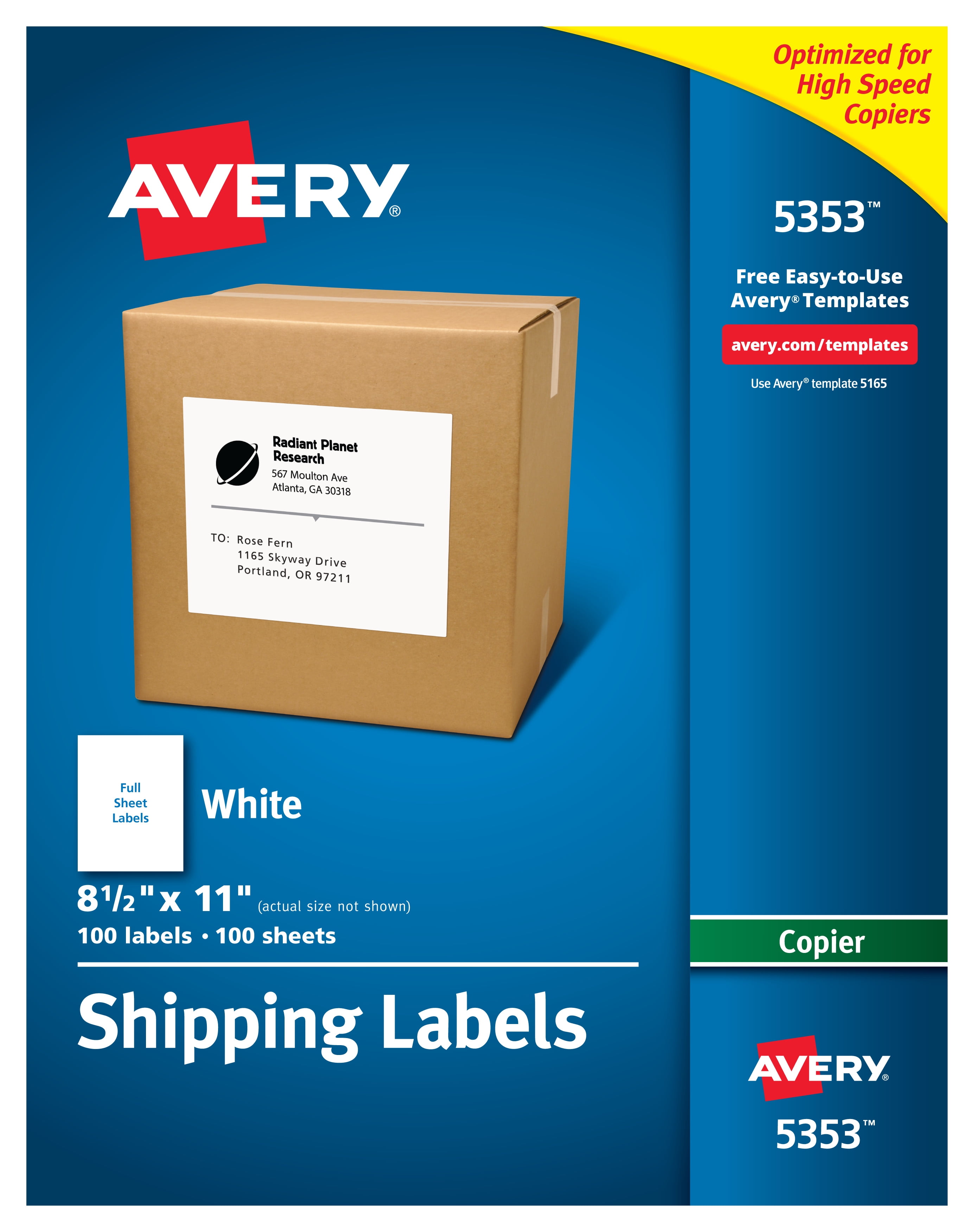 Avery full sheet address labels wont lift curl or fall off like other brands. Effortlessly mass print your customizable avery labels by creating a master sheet then producing multiple sheets using a high speed copier the square corner white matte full page shipping labels are great for shipping labels organization labels and package labels. Ultrahold permanent adhesive is guaranteed to stick and stay put on cardboard envelopes paper glass or metal.