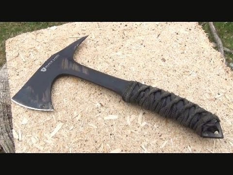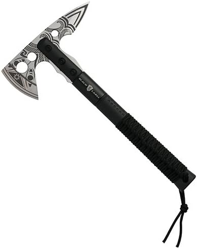 Black label shock n awe tomahawk forged 1055 carbon tool steel tactical tomahawk with curved penetration spike one piece hot forged steel head and integral handle with spiked pommel hand wrapped nylon paracord handle includes blade tech molded polymer belt sheath with molle attachment system. Whether you need to chop wood during a camping trip hack your way out of a wrecked vehicle or open a container this gadget can do the job for you. 36 out of 5 stars 3.