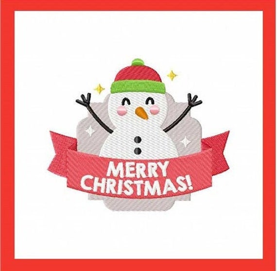 Snowman Merry Christmas Tag Label With Red Border Machine Embroidery Design