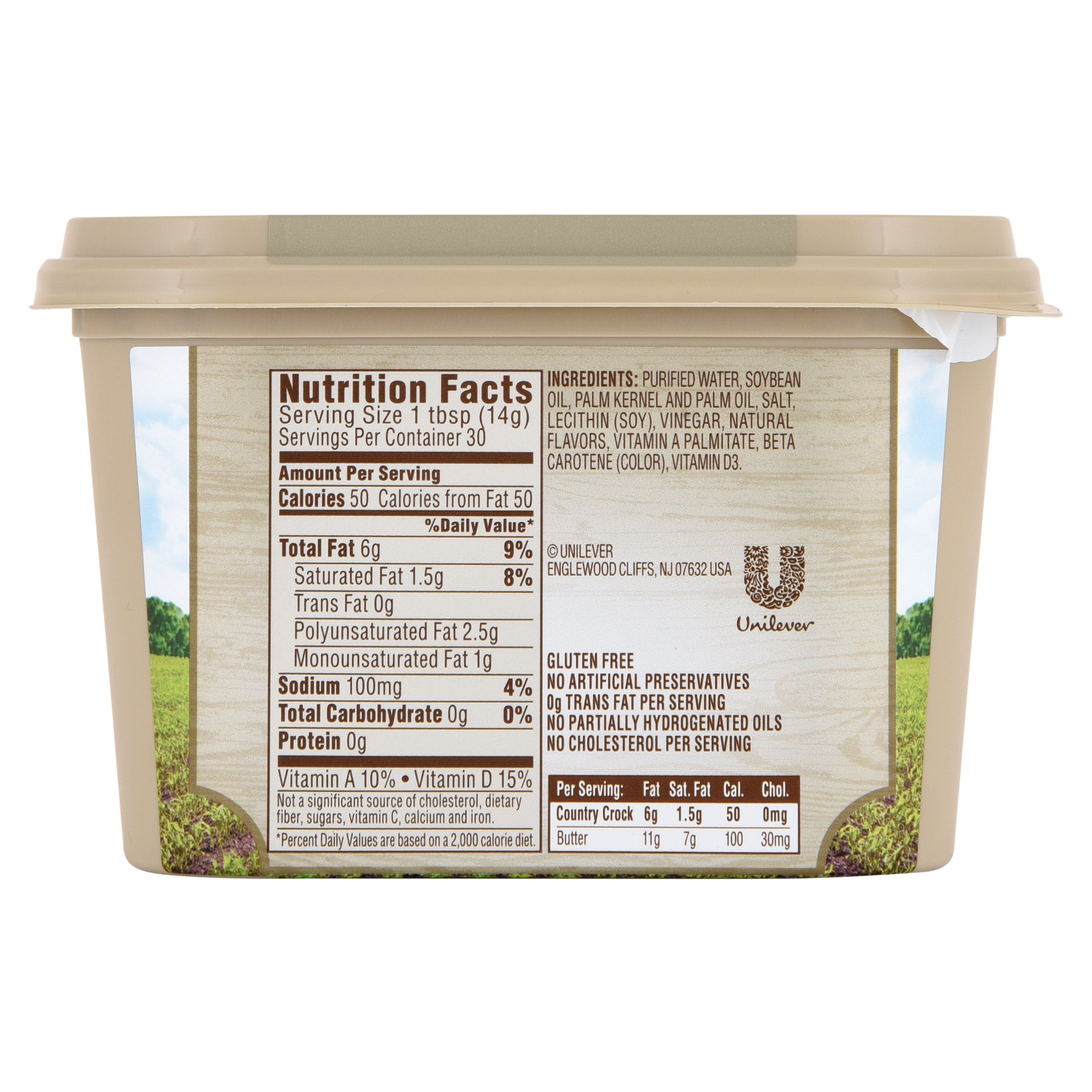 country crock nutrition label. The tubs contain soy oil and lecithin while the sticks do not. There are 100 calories in a 1 tbsp serving of country crock spreadable butter. It is plant based dairy free and gluten free.
