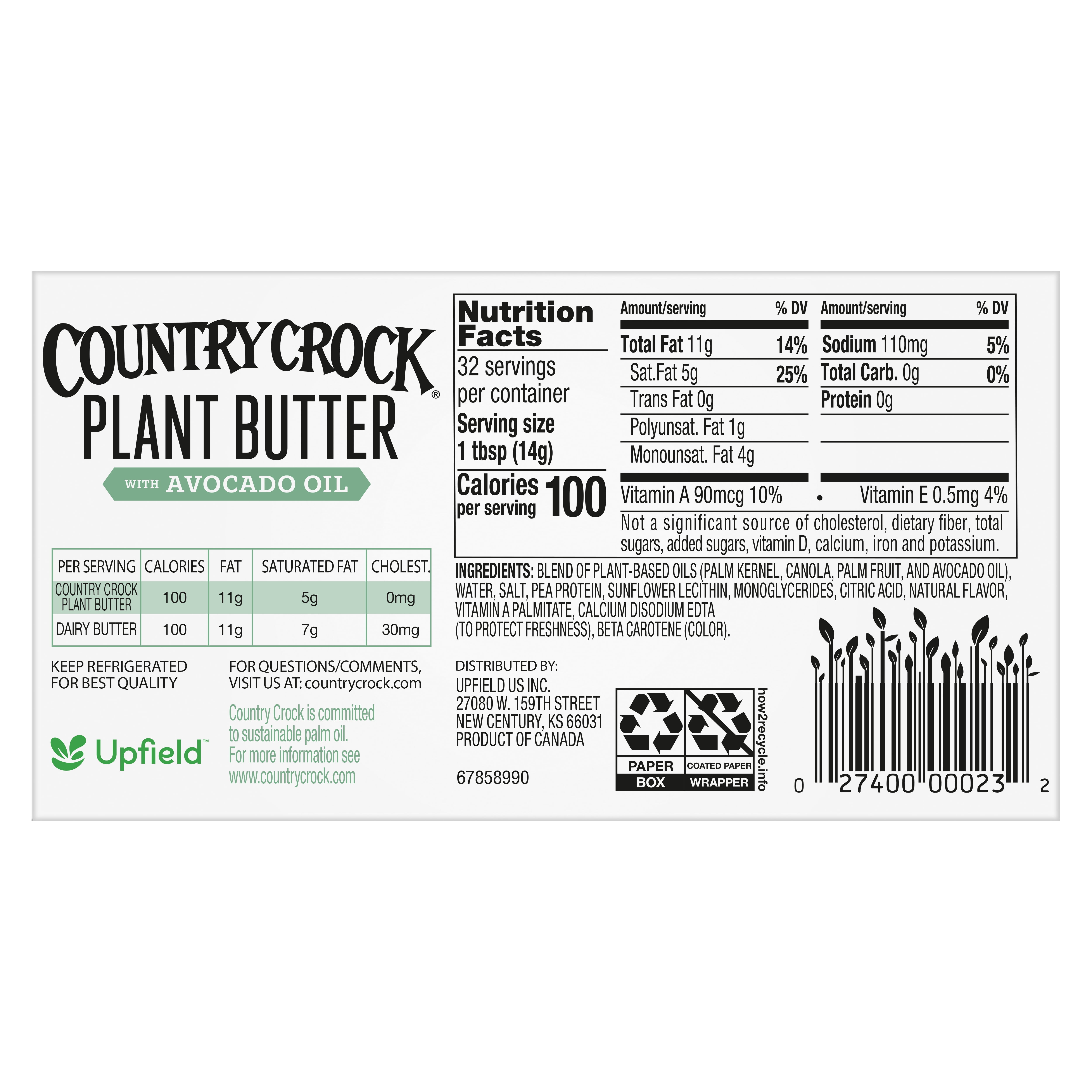 Delicious dishes with a touch of country. Please refer to the label on your product for the most accurate nutrition ingredient and allergen information. In addition country crock plant butter production results in less than half the greenhouse gas emissions of dairy butter production.