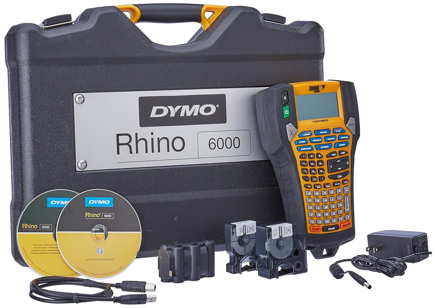 However what makes the dymo rhino 6000 cassettes different is that they are available in a diverse range of materials including flexible nylon permanent polyester vinyl non adhesive tag and even heat shrink tubes. The dymo rhino 6000 label maker makes jobsite labeling fast and easy with one touch hot keys and functionality that allows users to download previously created labels from a pc directly to the label maker. Rhino 6000 professional label printer one 1 black on white flexible nylon label cartridge lithium ion quick charge rechargeable battery pack ac adapter cd with instruction manual quick reference guide registration card additional information date first available february 23 2011.