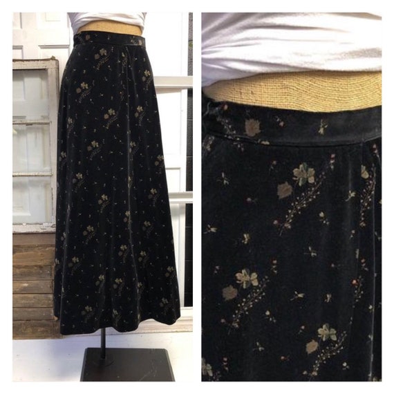 Evan Picone Full Maxi Skirt Velvet Skirt With Soft Floral Pattetn Ilgwu Label