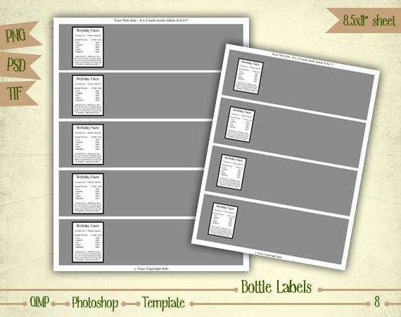 Water Bottle Labels Digital Collage Sheet Layered Template T008