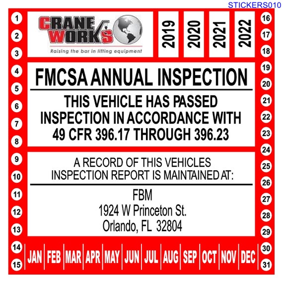 Fmcsa Periodic Inspection Label