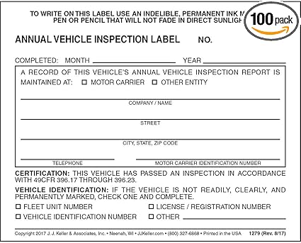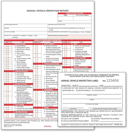 annual vehicle inspection label. They are available carbonless or with carbon. Annual vehicle inspection label helps you satisfy dots annual vehicle inspection requirements under 49 cfr 39617c2. Measures 3 12 x 6 permanent adhesive.