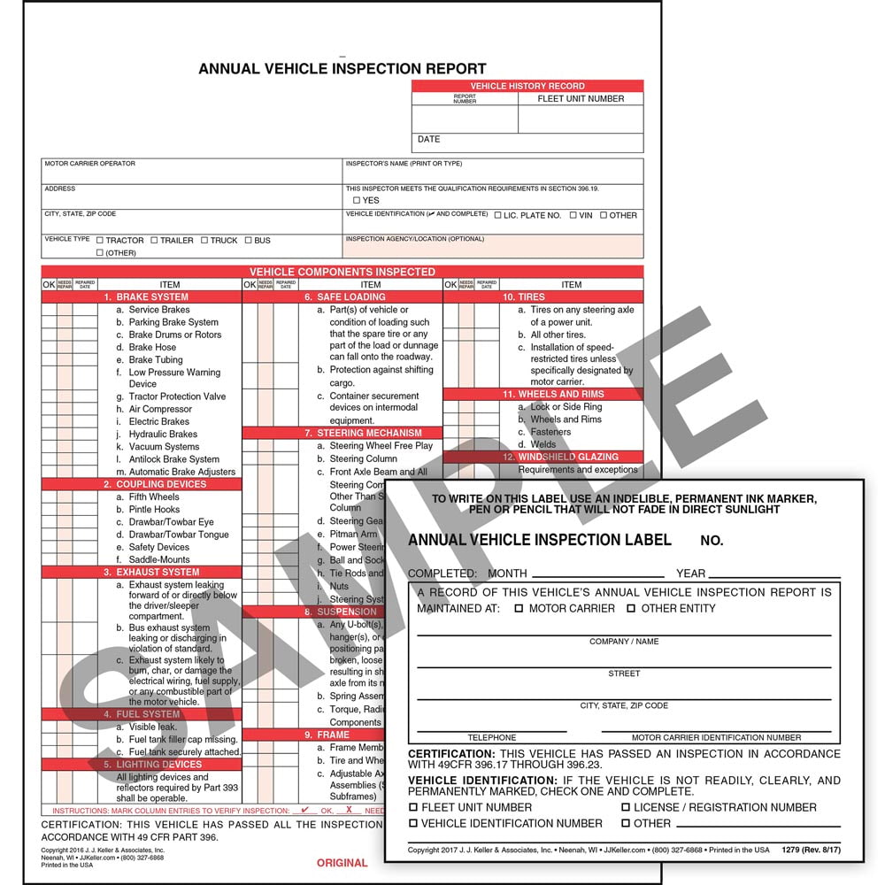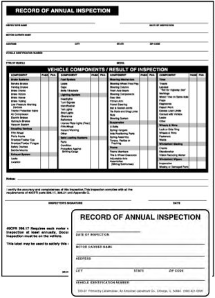 Annual Vehicle Inspection Forms Amp Labels