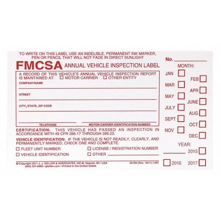 Annual Vehicle Inspection Label 100 Pk 2 Ply Vinyl With Mylar Laminate 5 X 4 Meet Dot Avir Requirements Under 49 Cfr 396 17 C 2 Jj Keller