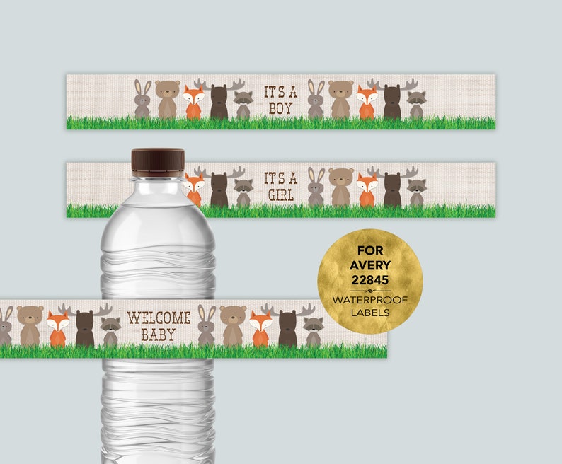 Avery 22845 Woodland Animals Baby Shower Water Bottle Labels Baby Shower Decoration Avery Template Instant Download