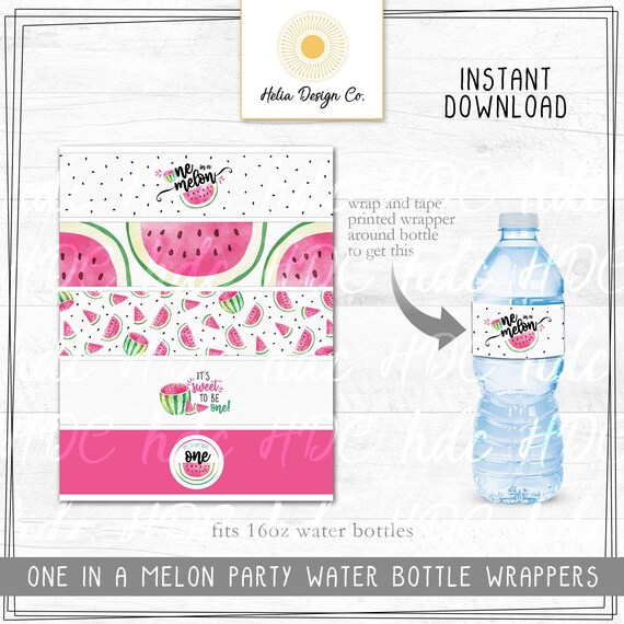 One In A Melon Watermelon Girl Birthday Water Bottle Wrappers