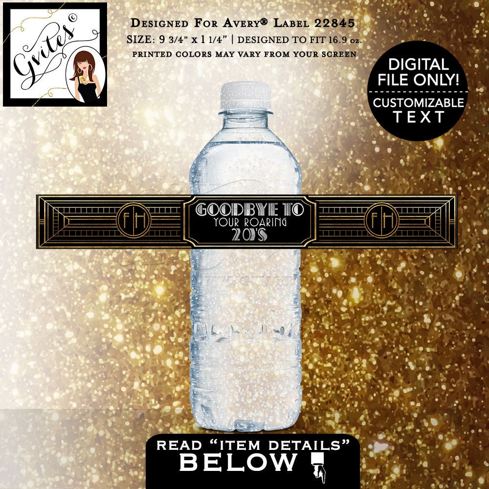 Roaring 20 S Party Water Bottle Labels Great Gatsby Printable Stickers