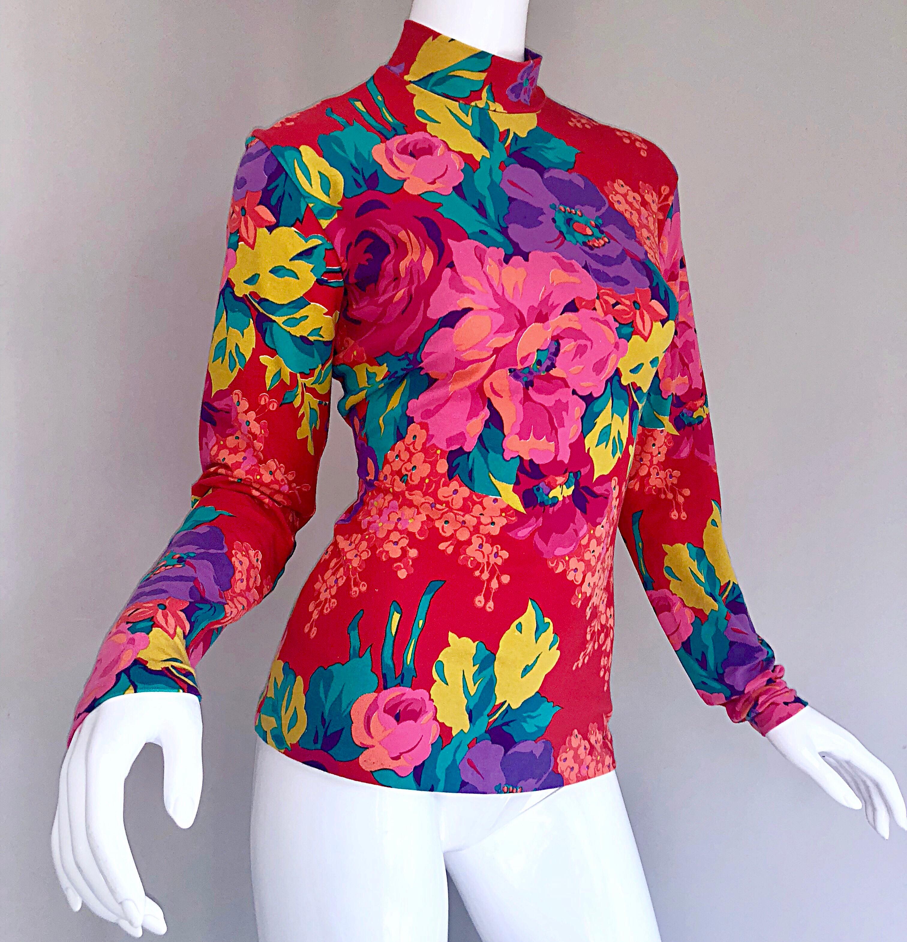 1980s Betsey Johnson Punk Label Flower Print Long Sleeve Vintage 80s Top