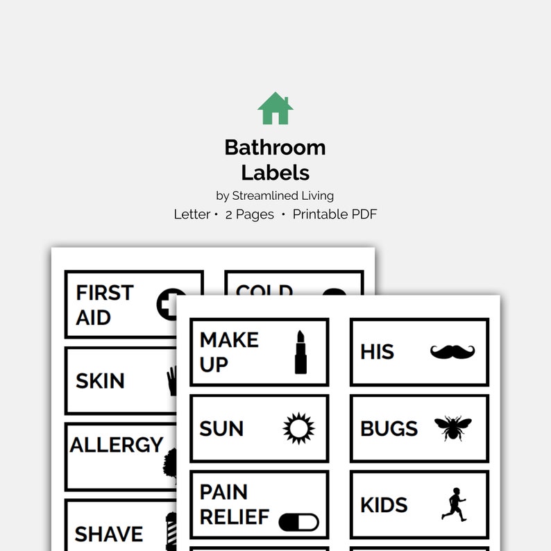 Bathroom Organizing Labels For Medicine Cabinet In Minimal Design With Pictures And Words Get Organized With These Printable Tags